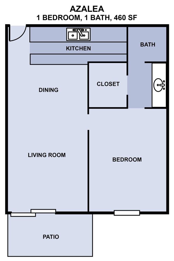 Apartment Model: AzaleaFrom $8001 Bedroom, 1 Bath, 460 sq ftAvailable NowFloorplansPhotos![]()