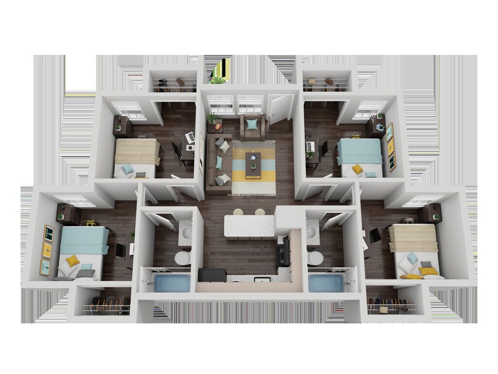 Apartment Model: 4BR 2BA4 Bedroom, 2 Bath, 873 sq ftUnavailable![]()