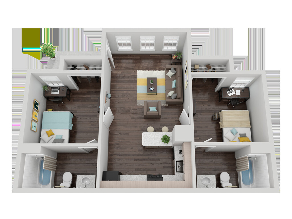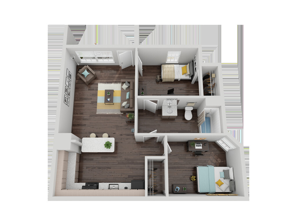 2 Beds, 2 Baths, 610 sq ftModel Gallery