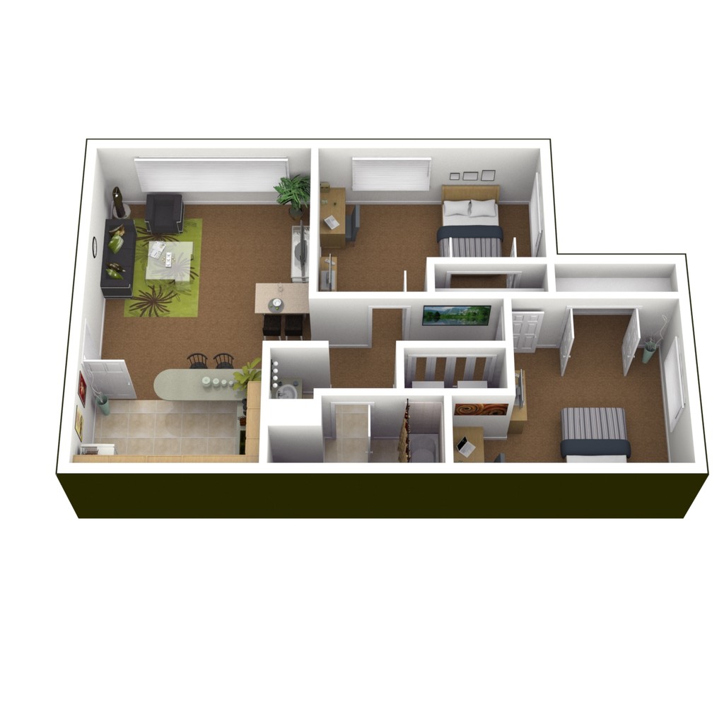 Apartment Model: 2x22 Bedroom, 2 Bath, 750 sq ftUnavailable![]()