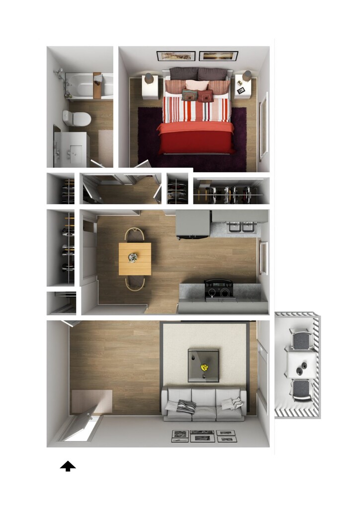 1 Bed, 1 Bath, 597 sq ftModel Gallery