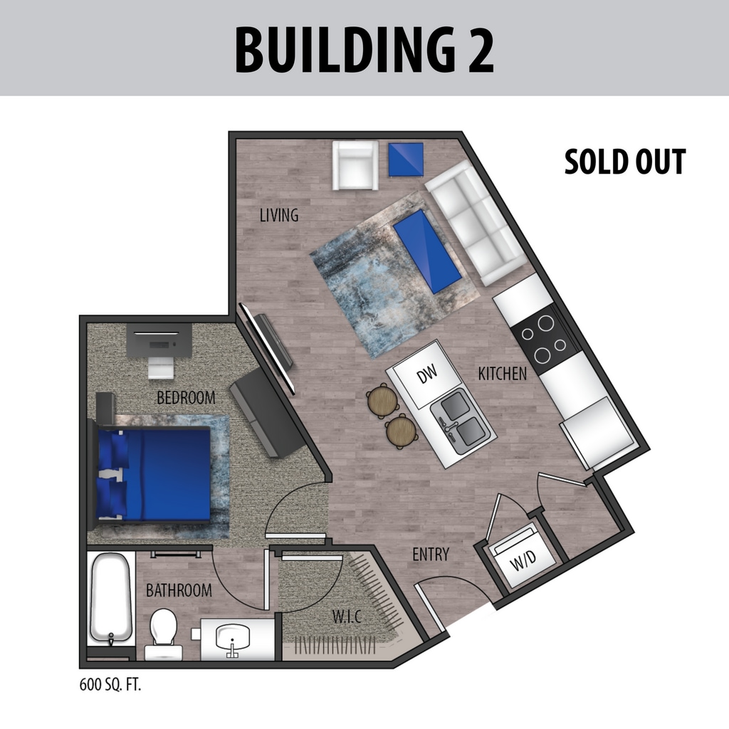 Apartment Model: 1A$1,4851 Bedroom, 1 Bath, 600 sq ftAvailable August 12, 2026Floor plans are artist's rendering. All dimensions are approximate. Actual product and specifications may vary in dimension or detail. Not all features are available in every rental home. Prices and availability are subject to change. Base rent is based on monthly frequency. Additional fees may apply, such as but not limited to package delivery, trash, water, amenities, etc. Deposits vary. Please see a representative for details.