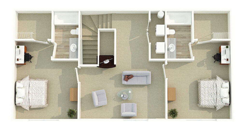 - Private bedrooms with bathroom and closet