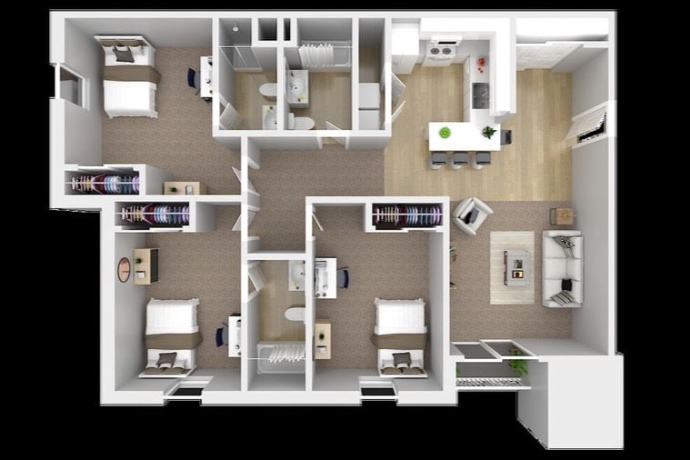 Apartment Model: 4 Bedroom/4 Bathroom4 Bedroom, 4 Bath, 1400 sq ftUnavailable![]()
