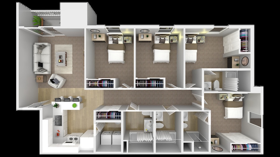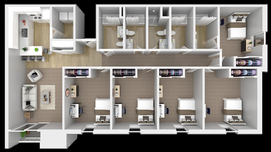 Apartment Model: 5 Bedroom/5 Bathroom5 Bedroom, 5 Bath, 1600 sq ftUnavailable![]()