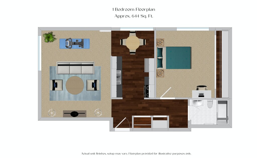 1 Bed, 1 Bath, 644 sq ftModel Gallery