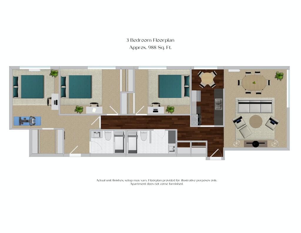 Apartment Model: 3 Bed, 2 Bath3 Bedroom, 2 Bath, 988 sq ftUnavailable![]()