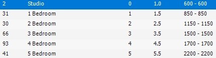 Bedroom | Average Rent | Cheapest Rent | Highest Rent |