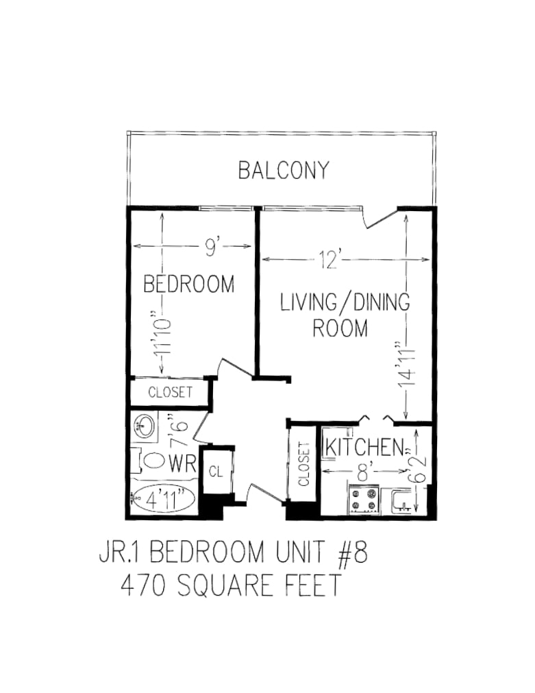 1 Bed, 1 Bath, 470 sq ftAvailable NowModel Gallery