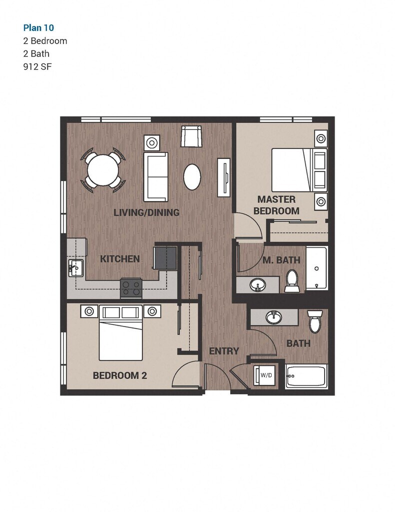 Two Bedroom Plan 10 - Floorplan 1 Apartment Unit: 314SApartment Model: Two Bedroom Plan 102 Bedroom, 2 Bath, 912 sq ftAvailable NowTwo Bedroom Plan 11A