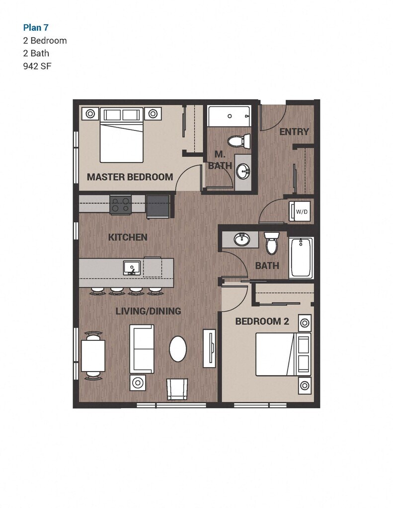 2 Beds, 2 Baths, 942 sq ftModel Gallery