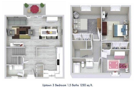 2 Bedroom to 3 Bedroom Apartments at Uptown 11 Townhouses currently range from $1,740 to $2,020