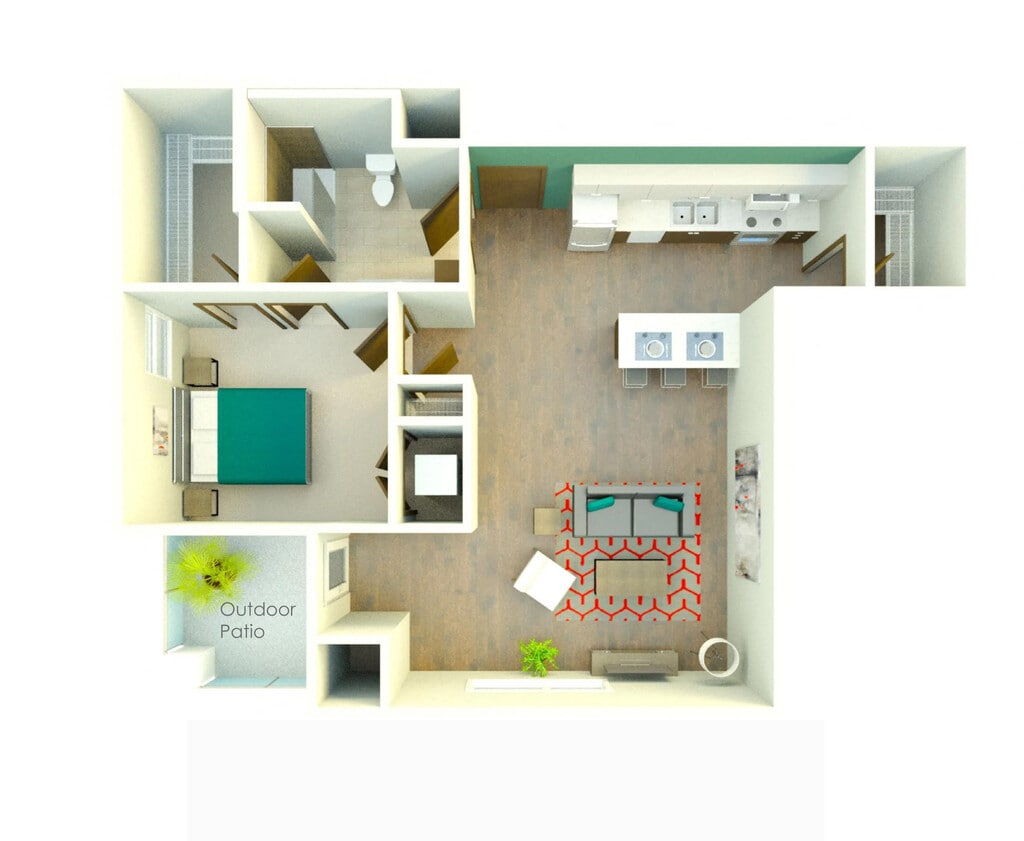 1 Bedroom 1 Bath - Floorplan 6 2 Bedrooms