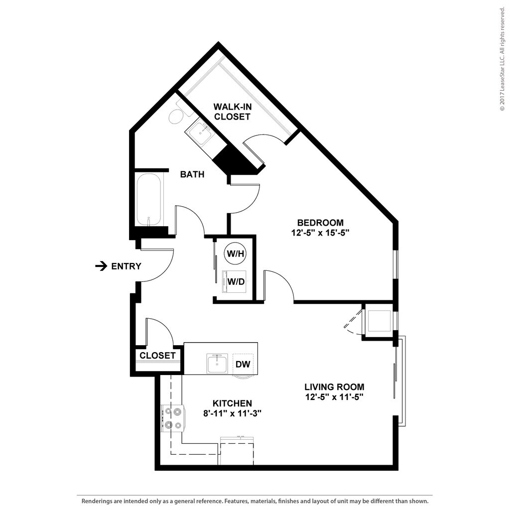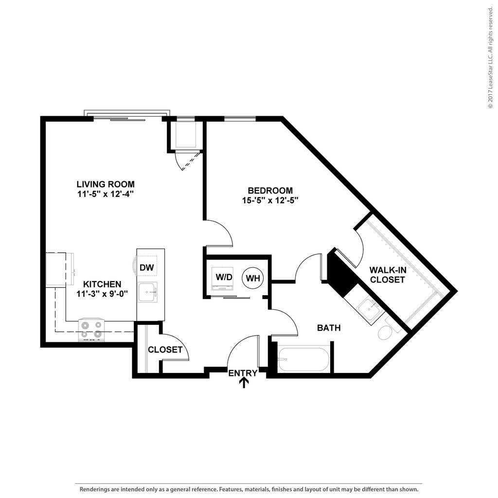 S1 - Floorplan 3 Apartment Unit: 431Apartment Model: S1$2,022Studio, 1 Bath, 615 sq ftAvailable November 26, 20251 Bedroom