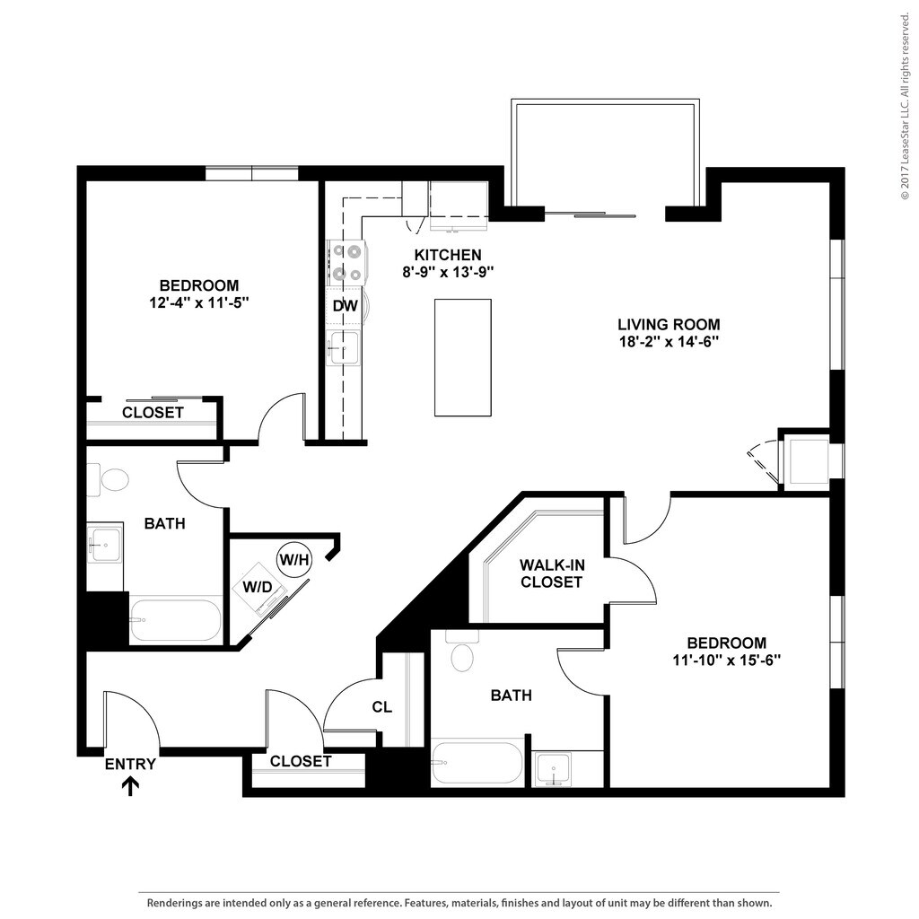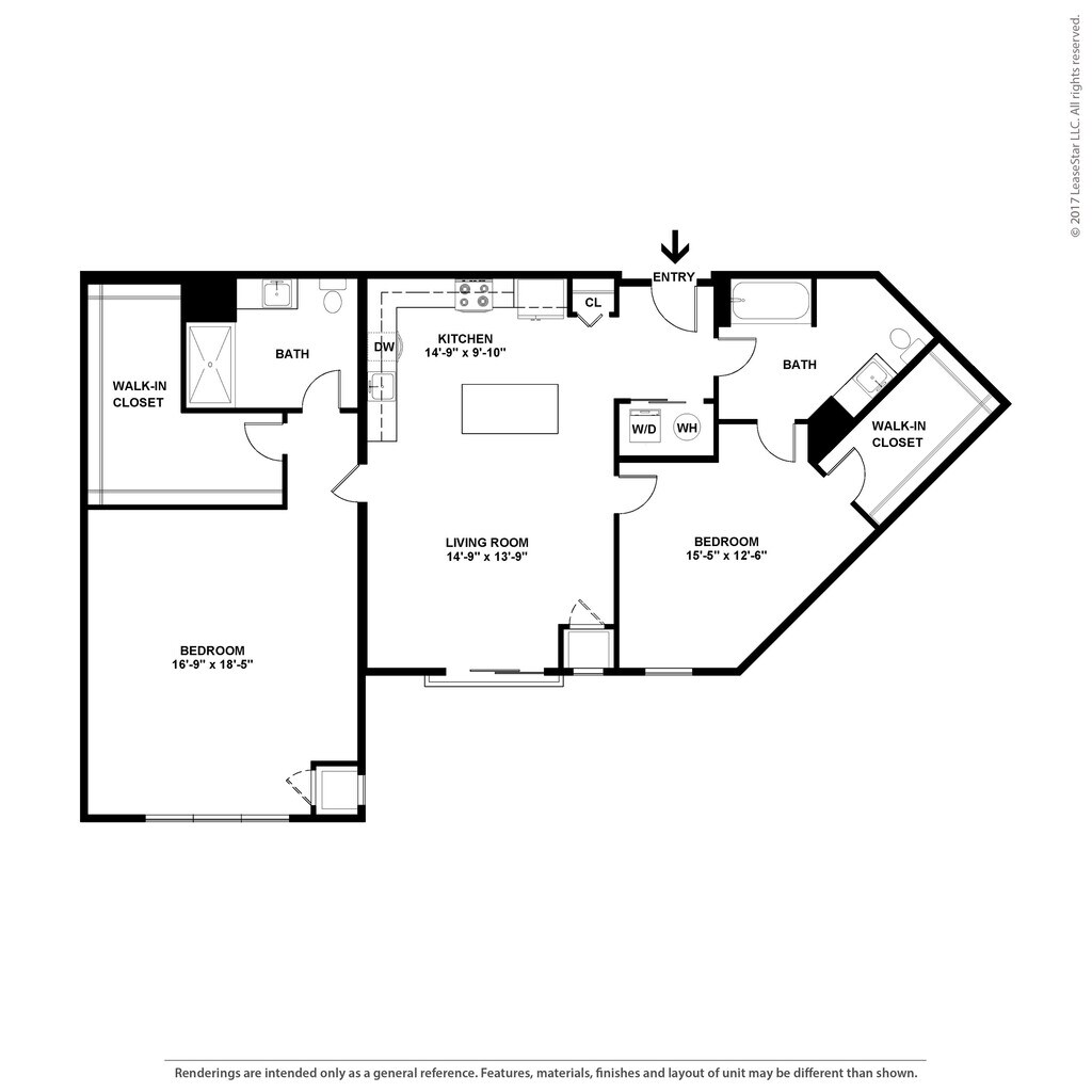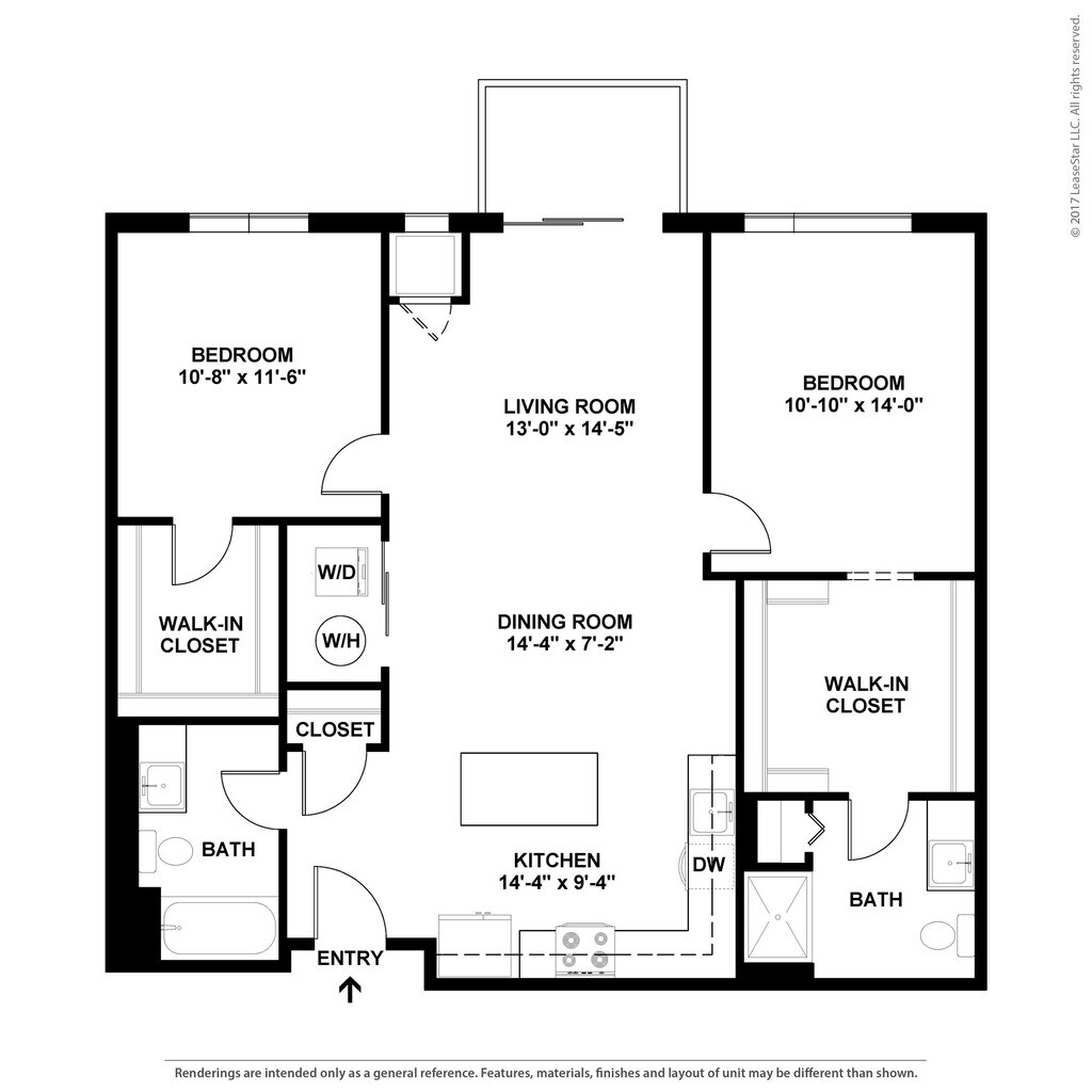 S2 - Floorplan 2 Floor plans are artist's rendering. All dimensions are approximate. Actual product and specifications may vary in dimension or detail. Not all features are available in every rental home. Prices and availability are subject to change. Base rent is based on monthly frequency. Additional fees may apply, such as but not limited to package delivery, trash, water, amenities, etc. Deposits vary. Please see a representative for details.