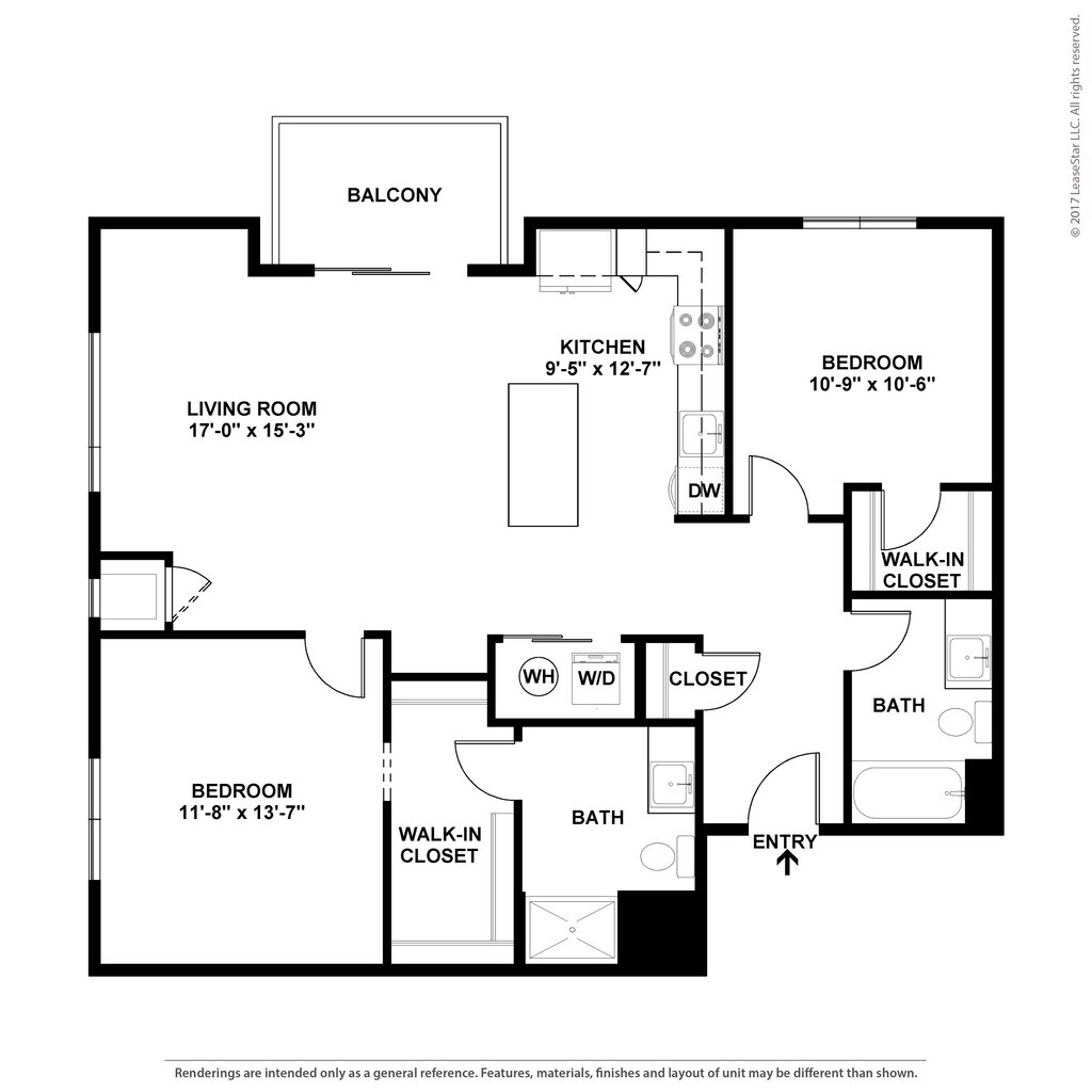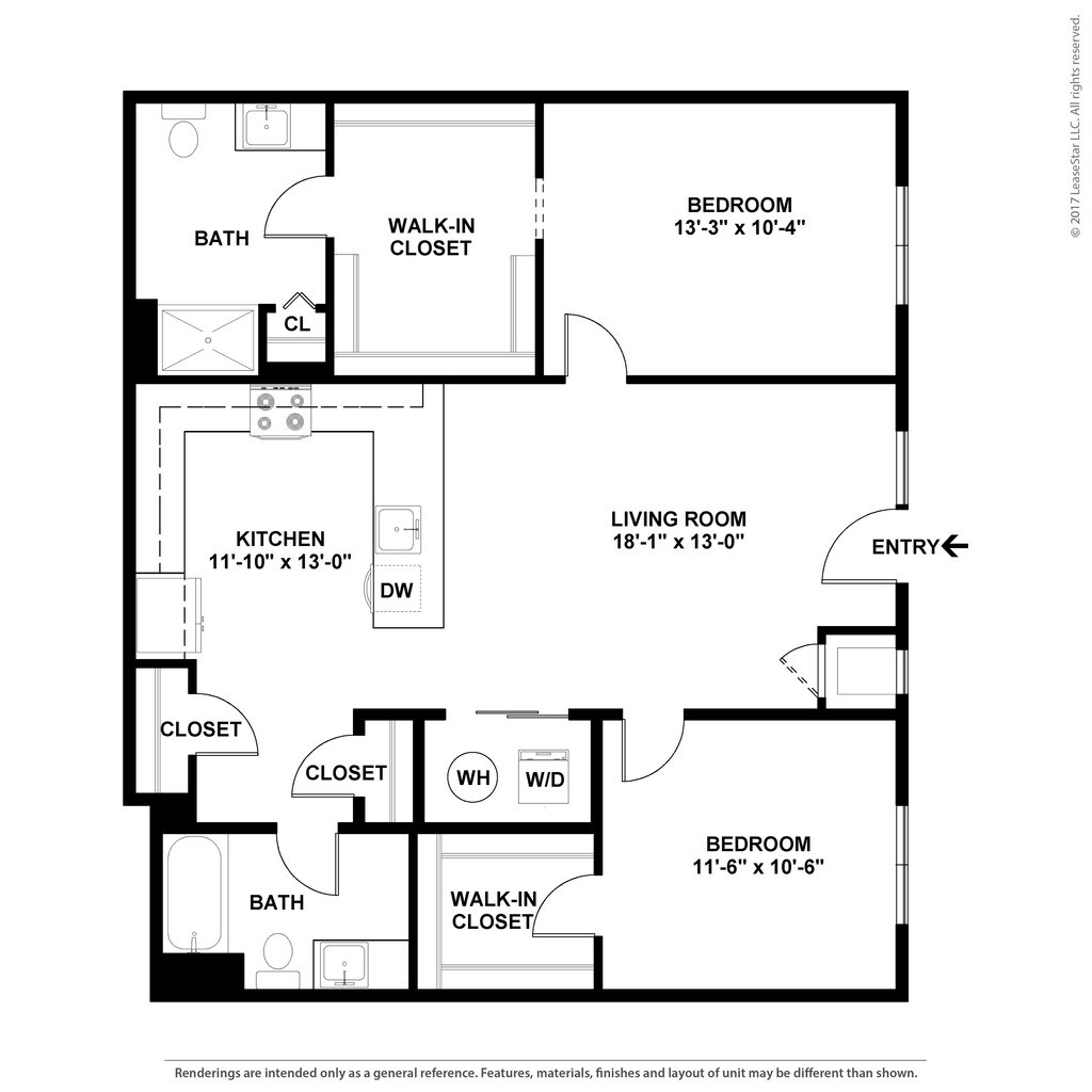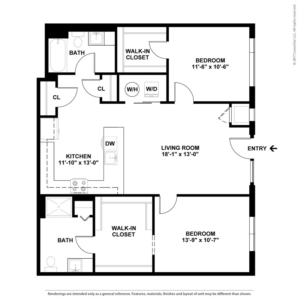 S2 - Floorplan 2 Floor plans are artist's rendering. All dimensions are approximate. Actual product and specifications may vary in dimension or detail. Not all features are available in every rental home. Prices and availability are subject to change. Base rent is based on monthly frequency. Additional fees may apply, such as but not limited to package delivery, trash, water, amenities, etc. Deposits vary. Please see a representative for details.