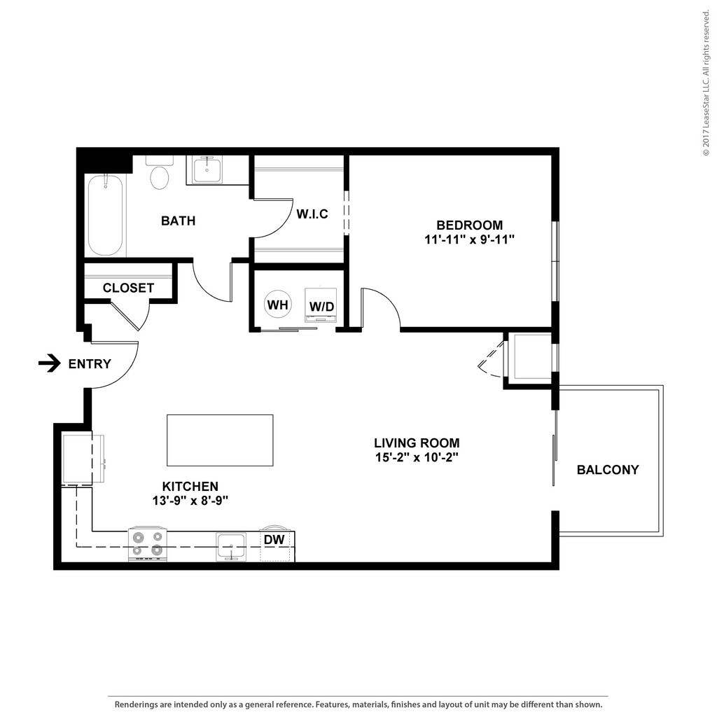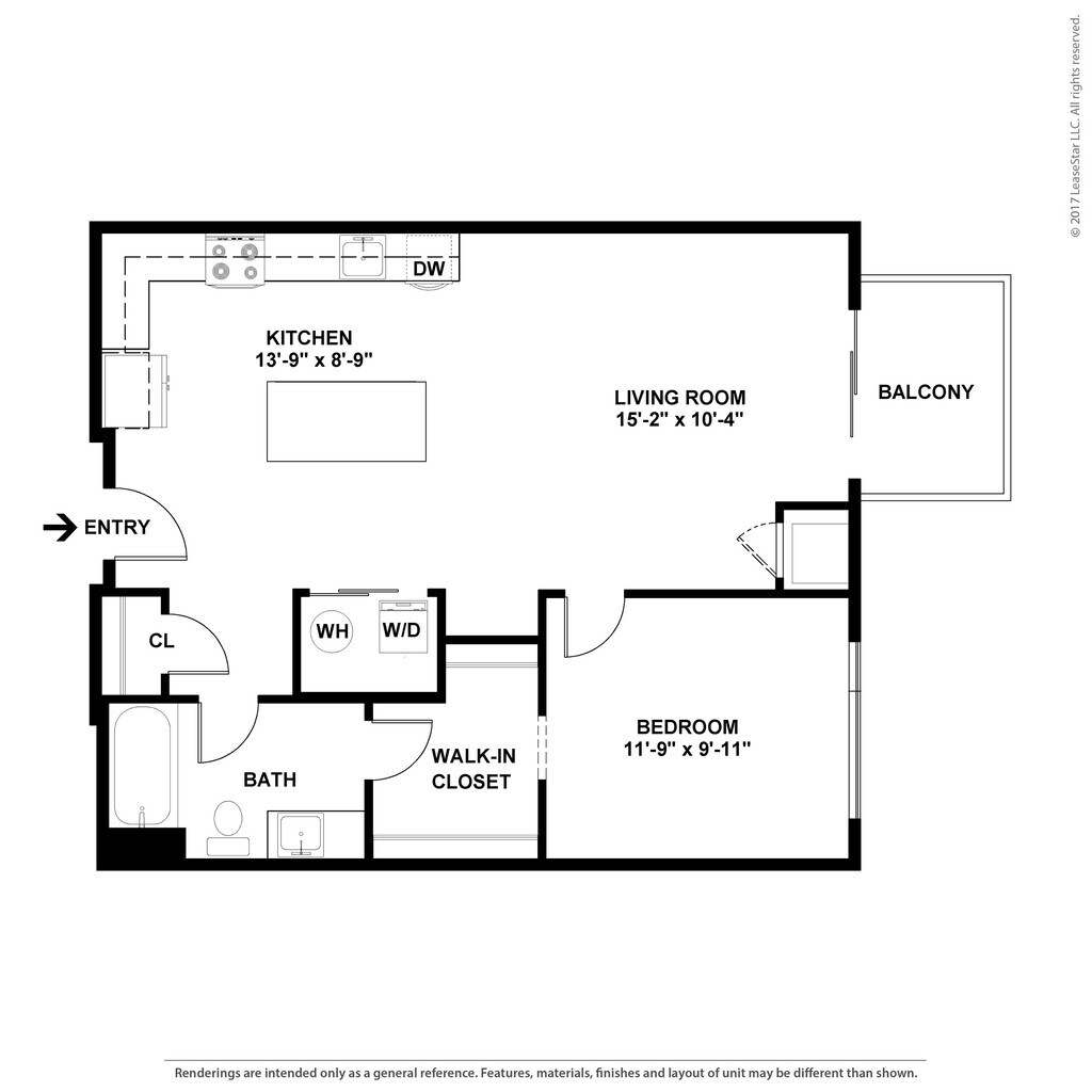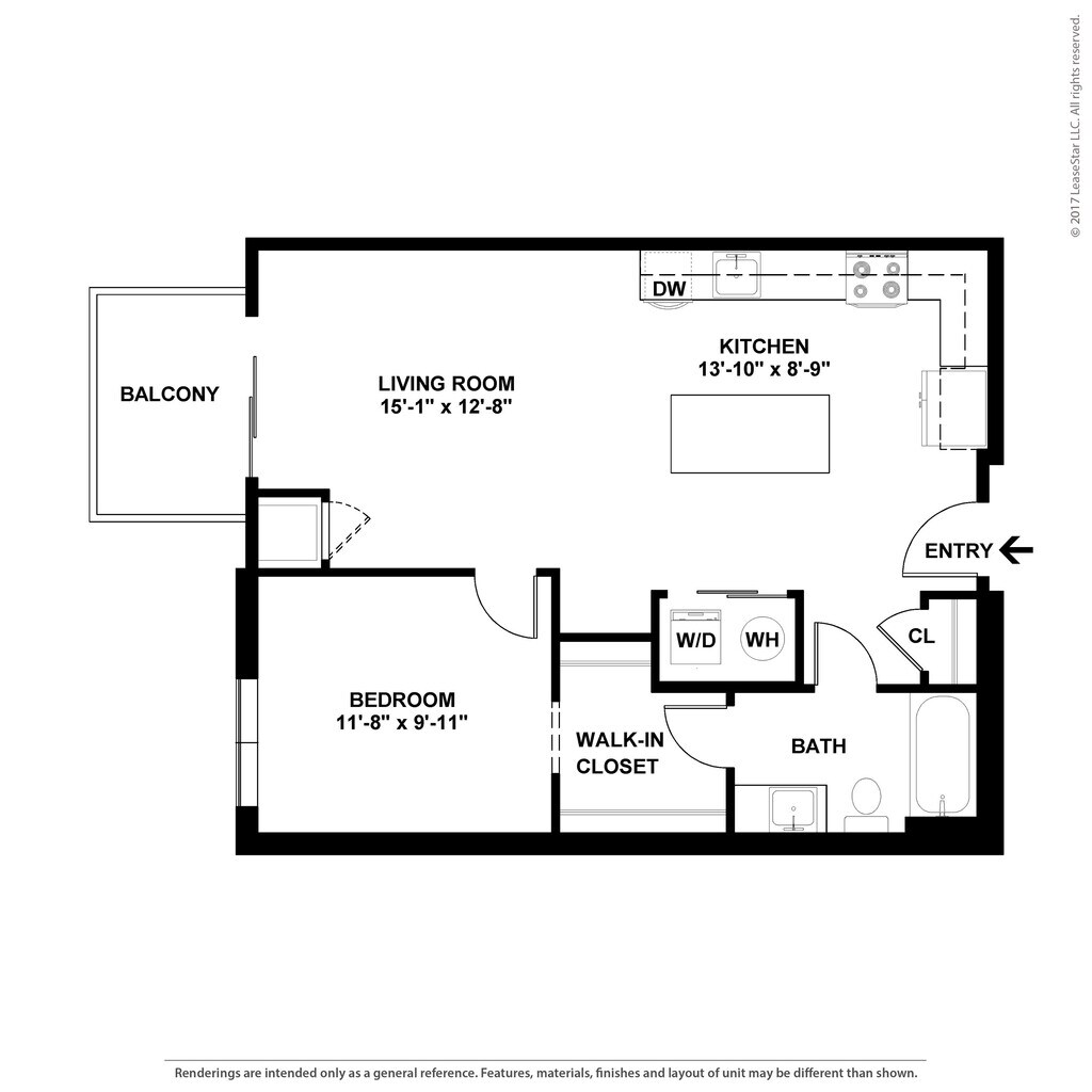 Apartment Model: S1From $2,022Studio, 1 Bath, 615 sq ftAvailable November 26, 2025Floor plans are artist's rendering. All dimensions are approximate. Actual product and specifications may vary in dimension or detail. Not all features are available in every rental home. Prices and availability are subject to change. Base rent is based on monthly frequency. Additional fees may apply, such as but not limited to package delivery, trash, water, amenities, etc. Deposits vary. Please see a representative for details.
