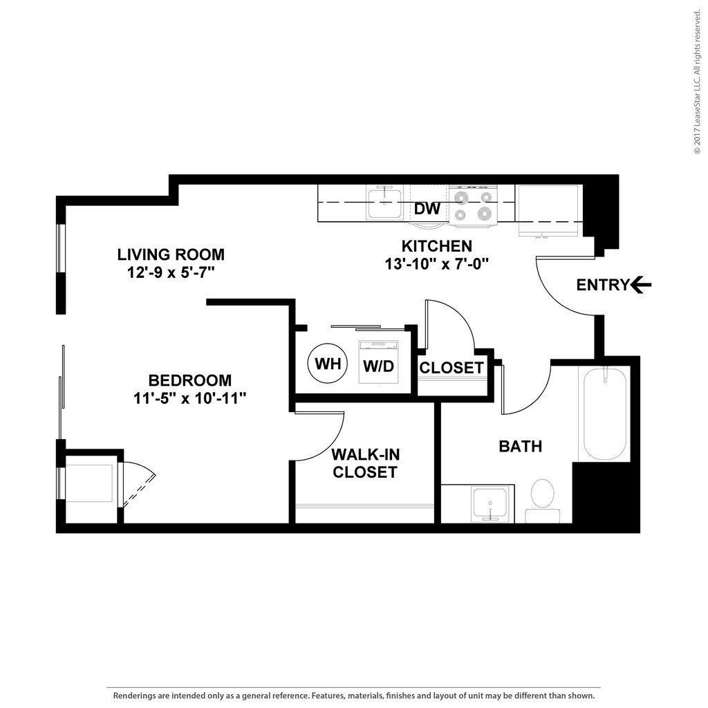 S2 - Floorplan 3 Apartment Unit: 143Apartment Model: S2$1,990Studio, 1 Bath, 532 sq ftAvailable NowFloorplan S1