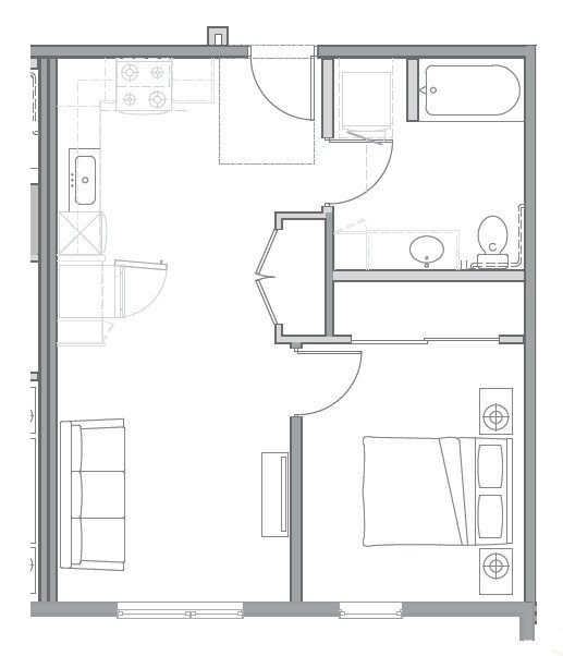 Studio, 1 Bath, 607 sq ftModel Gallery