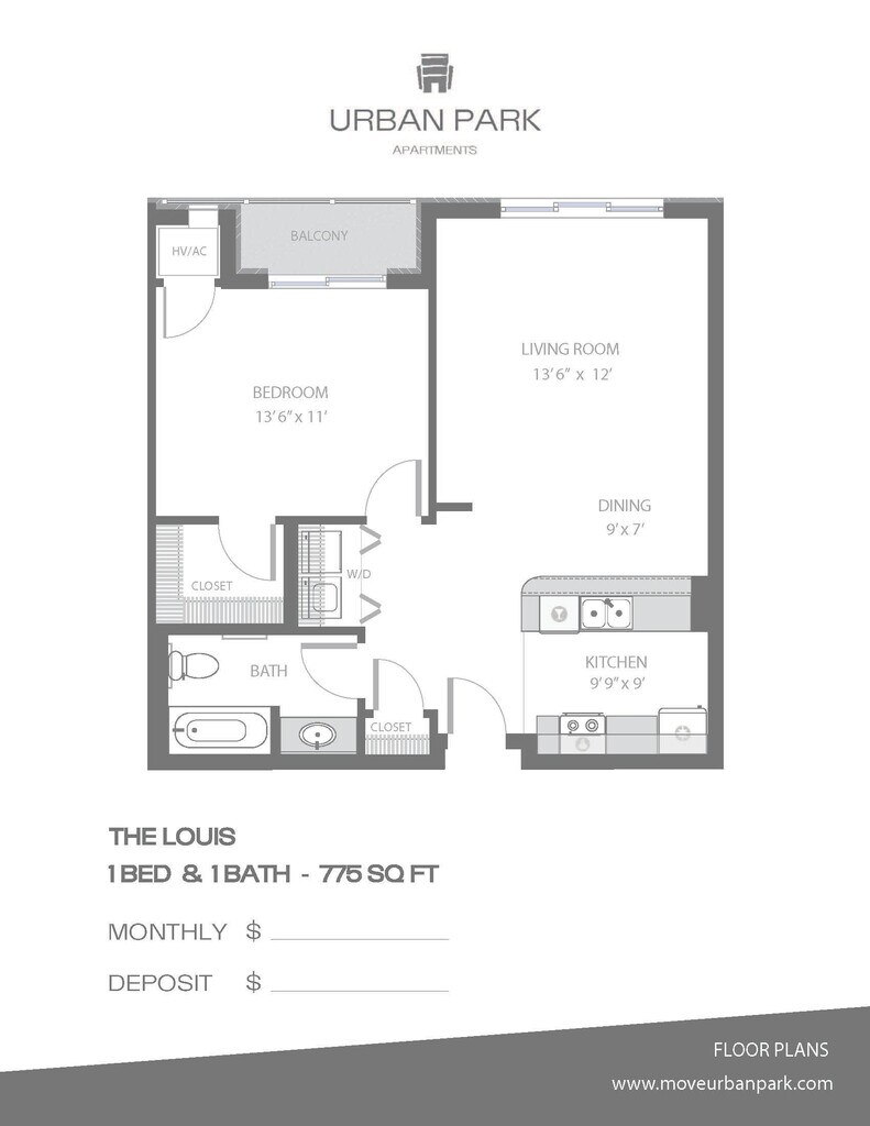 Apartment Model: UPI - The LouisCall For Rates1 Bedroom, 1 Bath, 757 sq ftUnavailableFloorplansPhotos![]()