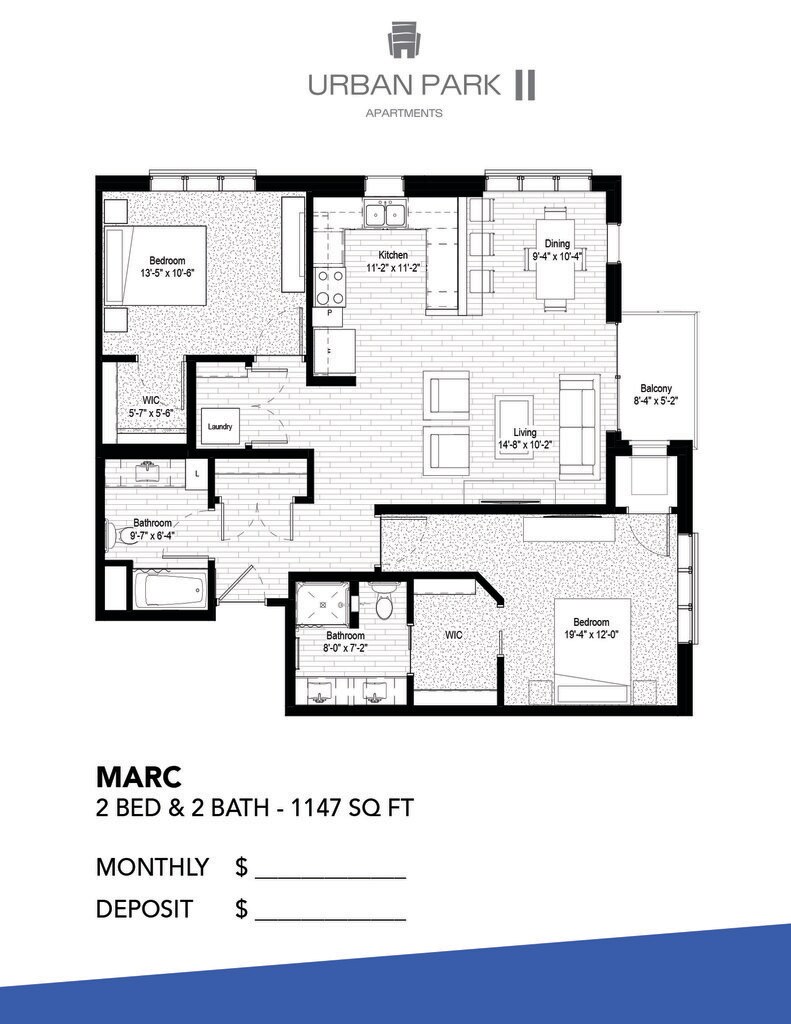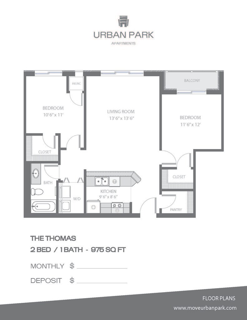 Apartment Model: UPII - PeavyCall For Rates1 Bedroom, 1 Bath, 747 sq ftUnavailable![]()