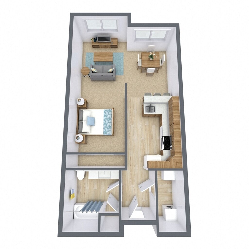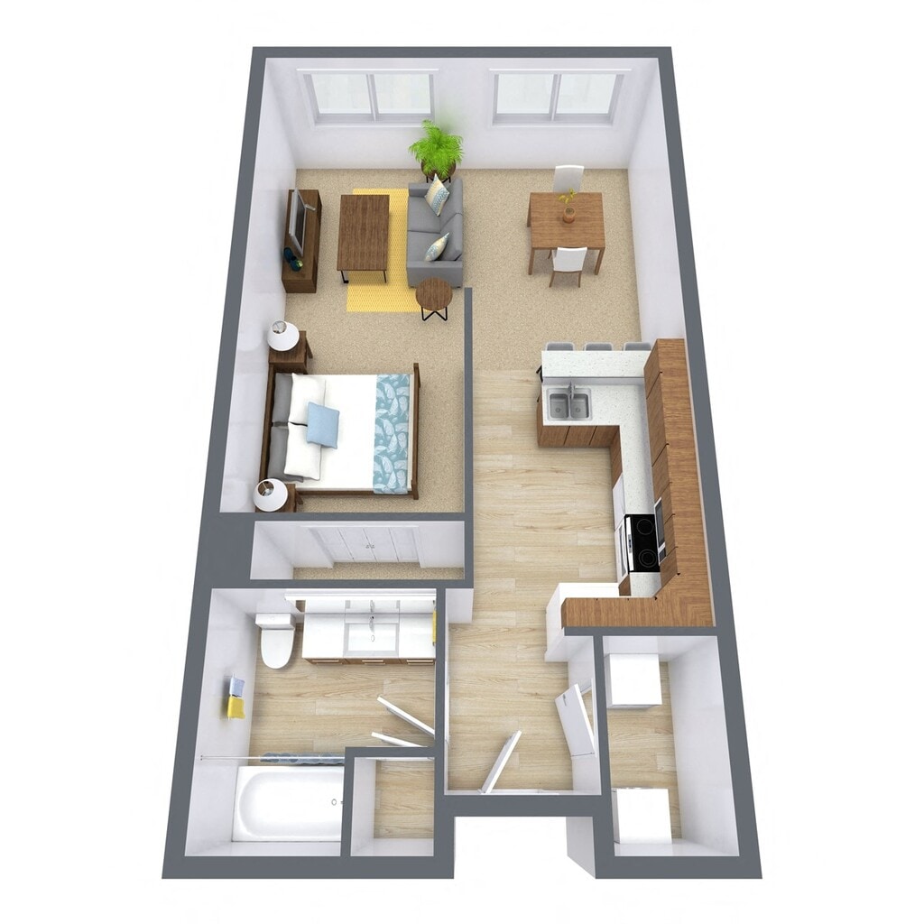 Efficiency 01B - Floorplan 2 Apartment Unit: 07-107Apartment Model: Efficiency 01B$910Studio, 1 Bath, 641 sq ftAvailable NowEfficiency 01E