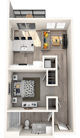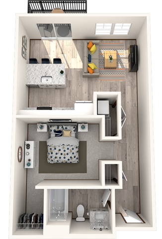 S1 - Floorplan 4 Apartment Unit: 1-115Apartment Model: S1From $1,327Studio, 1 Bath, 553 sq ftAvailable NowFloorplan S3