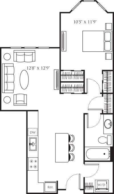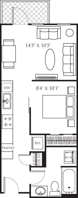 Apartment Model: Studio FCall For RatesStudio, 1 Bath, 514 sq ftUnavailableFloor plans are artist's rendering. All dimensions are approximate. Actual product and specifications may vary in dimension or detail. Not all features are available in every rental home. Prices and availability are subject to change. Base rent is based on monthly frequency. Additional fees may apply, such as but not limited to package delivery, trash, water, amenities, etc. Deposits vary. Please see a representative for details.