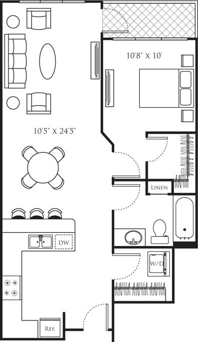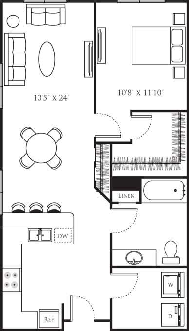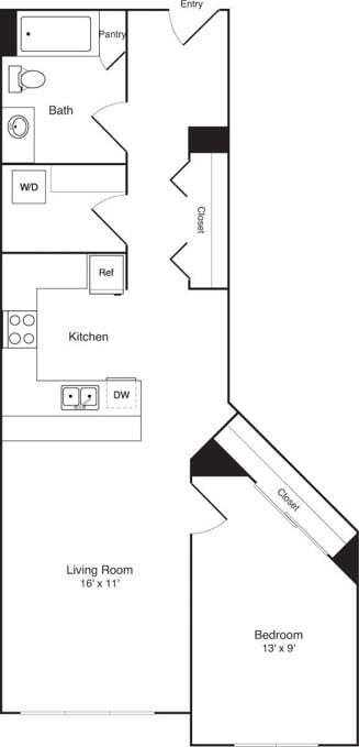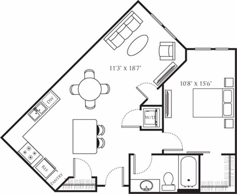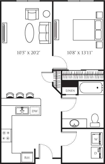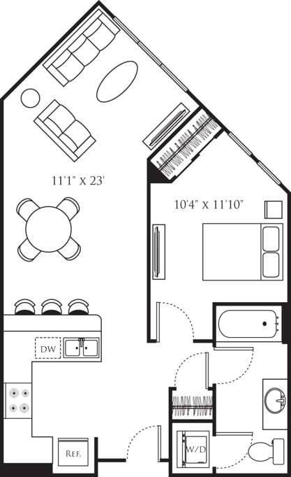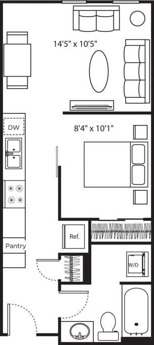 Studio A - Floorplan 1 Apartment Unit: 813Apartment Model: Studio A$1,680Studio, 1 Bath, 443 sq ftAvailable NowStudio J