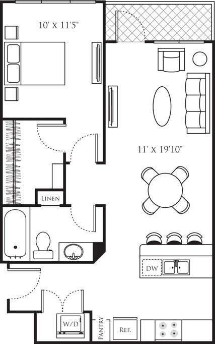Apartment Model: Studio HFrom $1,615Studio, 1 Bath, 570 sq ftAvailable November 23, 2025Floor plans are artist's rendering. All dimensions are approximate. Actual product and specifications may vary in dimension or detail. Not all features are available in every rental home. Prices and availability are subject to change. Base rent is based on monthly frequency. Additional fees may apply, such as but not limited to package delivery, trash, water, amenities, etc. Deposits vary. Please see a representative for details.