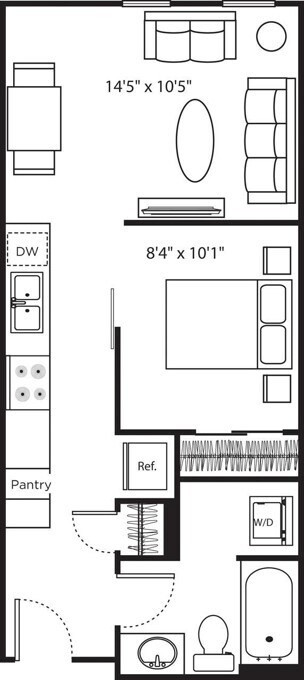 Apartment Model: Studio AFrom $1,680Studio, 1 Bath, 443 sq ftAvailable NowFloor plans are artist's rendering. All dimensions are approximate. Actual product and specifications may vary in dimension or detail. Not all features are available in every rental home. Prices and availability are subject to change. Base rent is based on monthly frequency. Additional fees may apply, such as but not limited to package delivery, trash, water, amenities, etc. Deposits vary. Please see a representative for details.