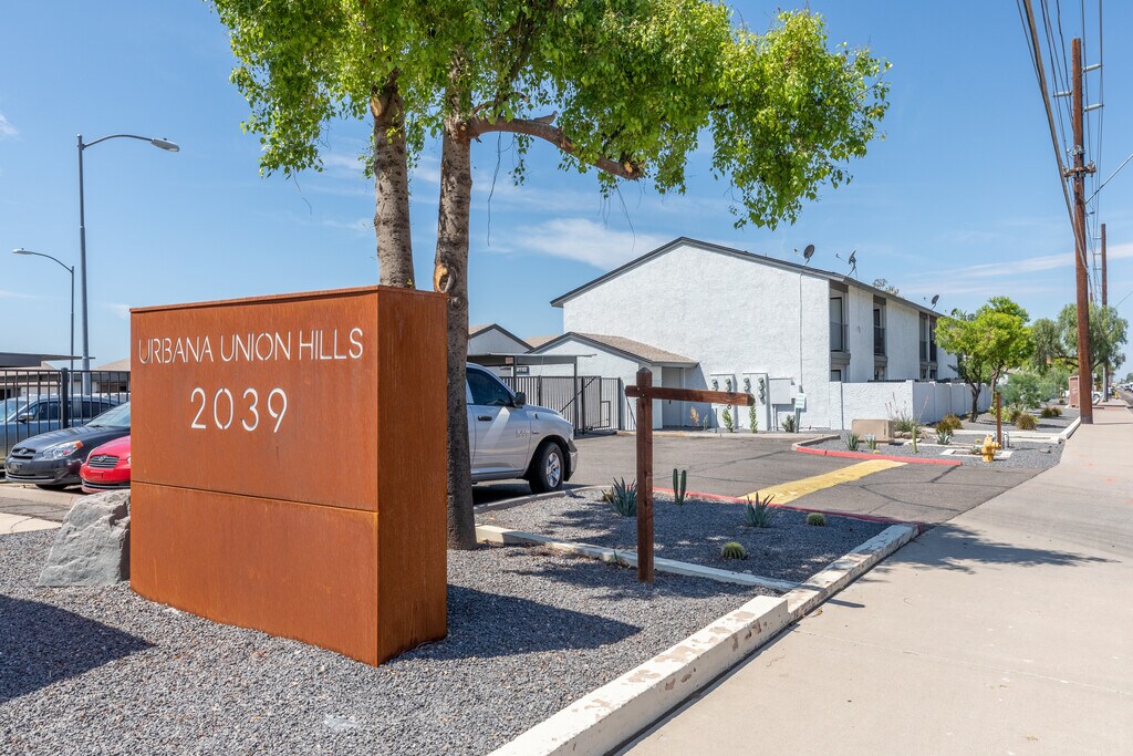 Find your new apartment at Urbana Union Hills in Phoenix. These apartments are located at 2015 W Union Hills Dr in the Deer Valley area of Phoenix. At Urbana Union Hills you'll feel right at home.. Newly renovated with modern appliances ,over the range microwave, and washer/dryer in selected units. With plenty of recreational activities near, discover 5 parks within 4.9 miles, including Conocido Park, Turtle Rock Basin, and Adobe Mountain Park. Living in Deer Valley provides easy access to Phoenix Sky Harbor International.
