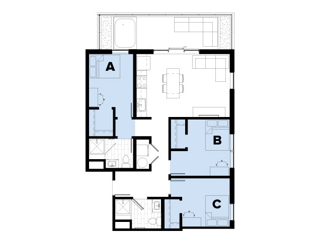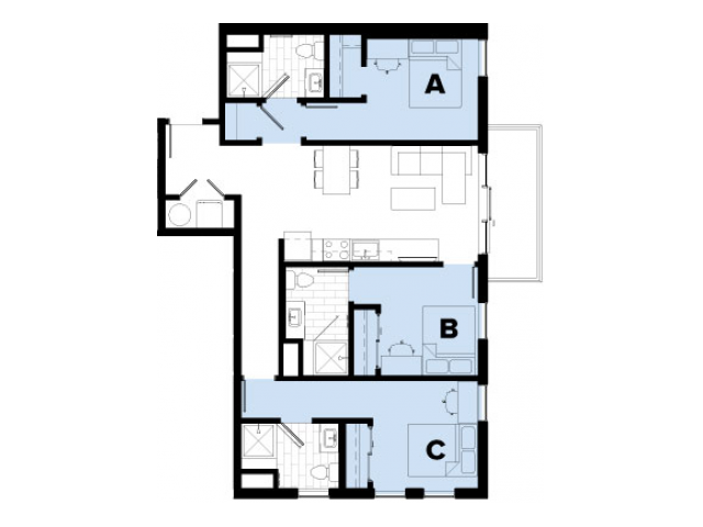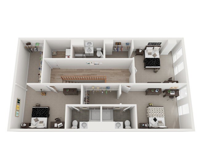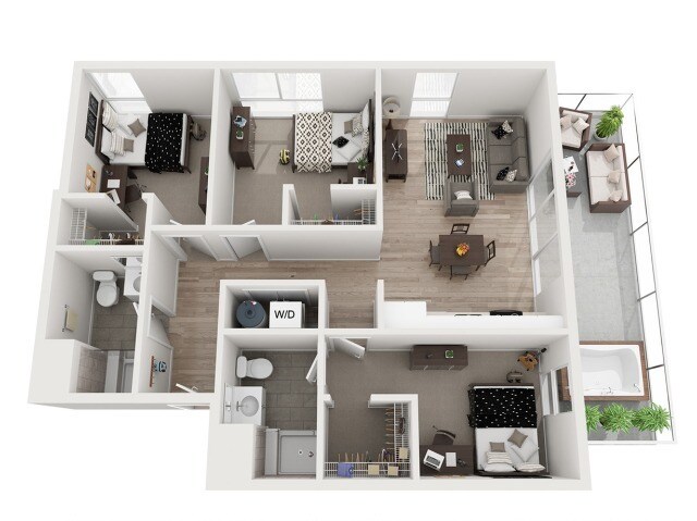 Apartment Model: 3 Bed 3 Bath$1,3493 Bedroom, 3 Bath, 1060 sq ftUnavailable![]()