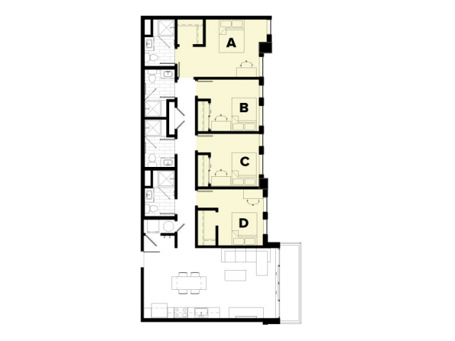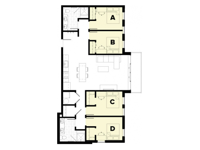 Apartment Model: 4 Bed 4 Bath$1,0994 Bedroom, 4 Bath, 1398 sq ftUnavailable![]()