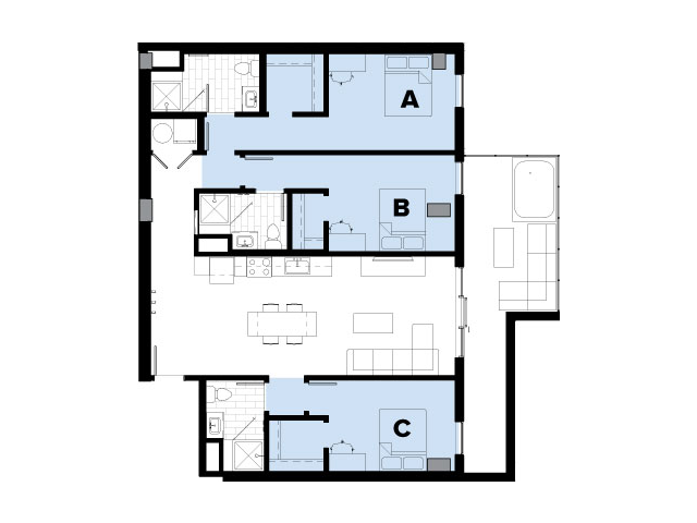 3 Bed 3 Bath - Floorplan 2 3 Bed 3 Bath Large