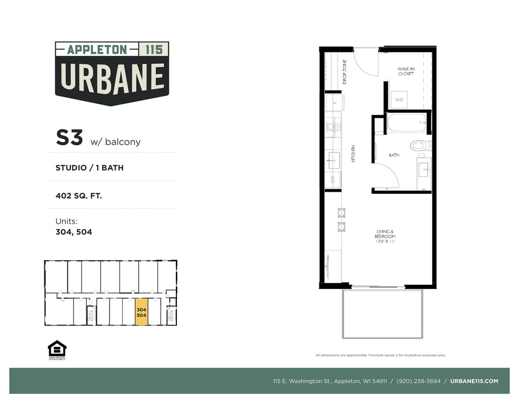 Urbane115 is a vibrant new apartment community nestled in downtown Appleton. This urban living experience provides opportunities to be steps away from: night markets, venues with live music, weekly farmers' markets and a growing culinary scene. The location is ideal for anyone looking for an urban lifestyle. Units are equipped with in-unit washer & dryer, dishwasher, and select units have balconies. A limited number of our studios also have murphy beds. Urbane115 is a pet-friendly property.