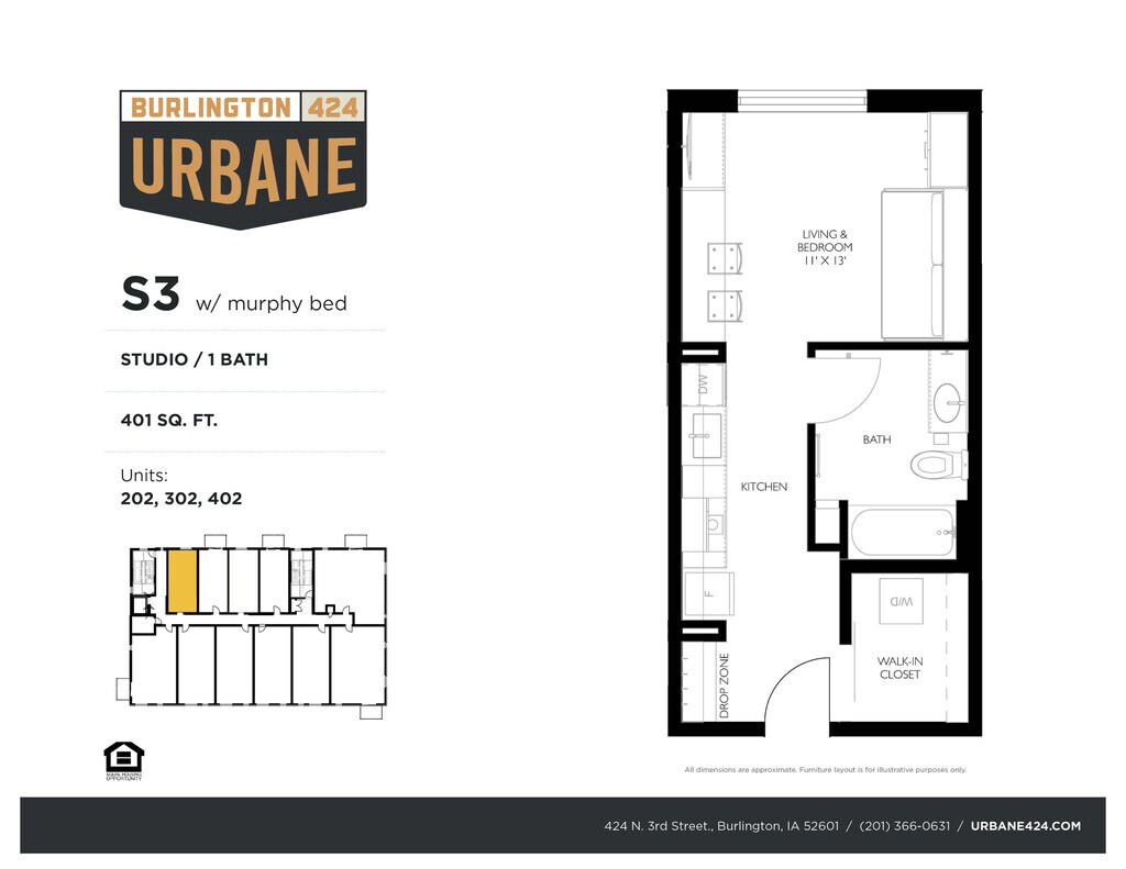 Urbane424 Apartments is located in the 52601 Zip code of Burlington, IA. This community is professionally managed by Merge Urban Development Group