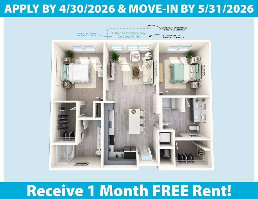 Studio, 1 Bath, 697-707 sq ftAvailable NowModel Gallery