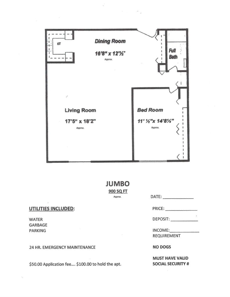 Price Availability Date Unit Sq Ft From $1,500 Call for Availability 1 Bedroom Jumbo w/ Dishwasher 900 sq ft Model Amenities and Features