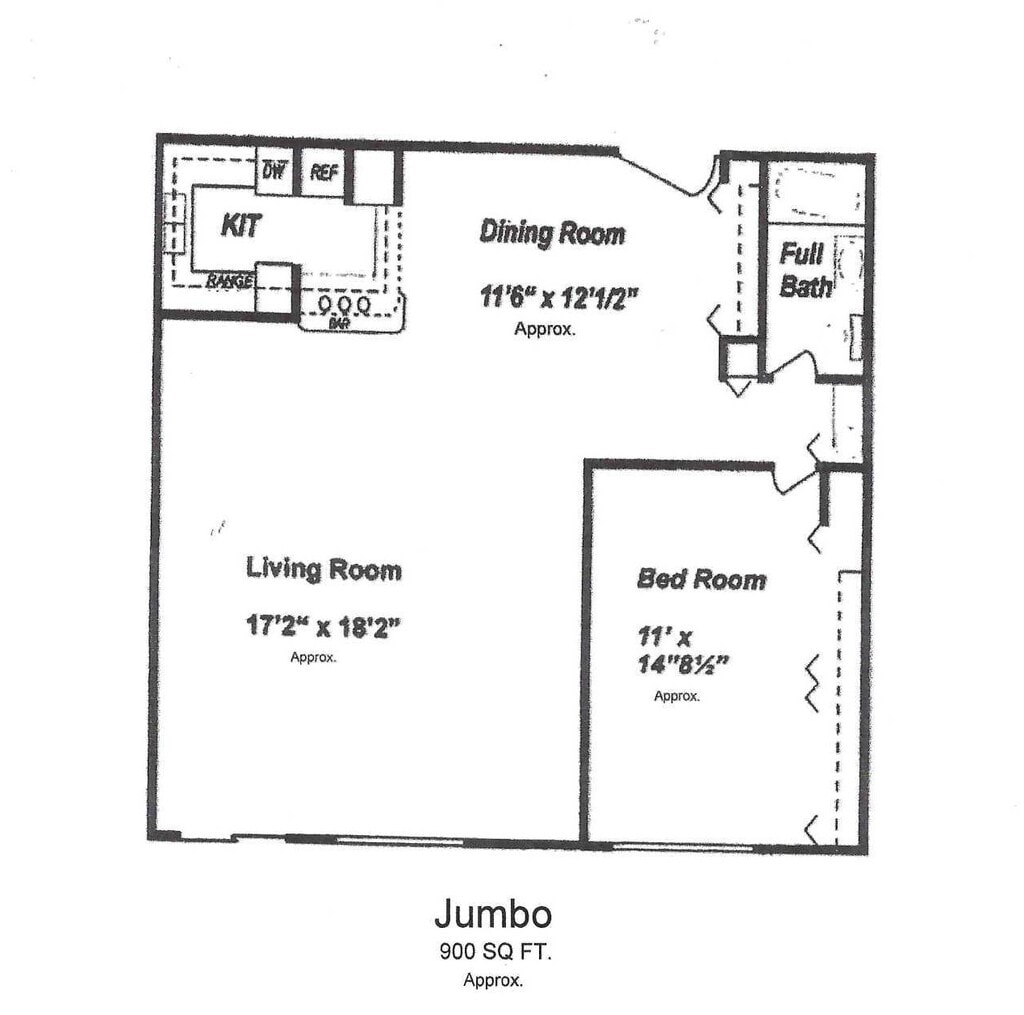 1 Bedroom Jumbo w/ Dishwasher - Floorplan 1 2 Bedrooms