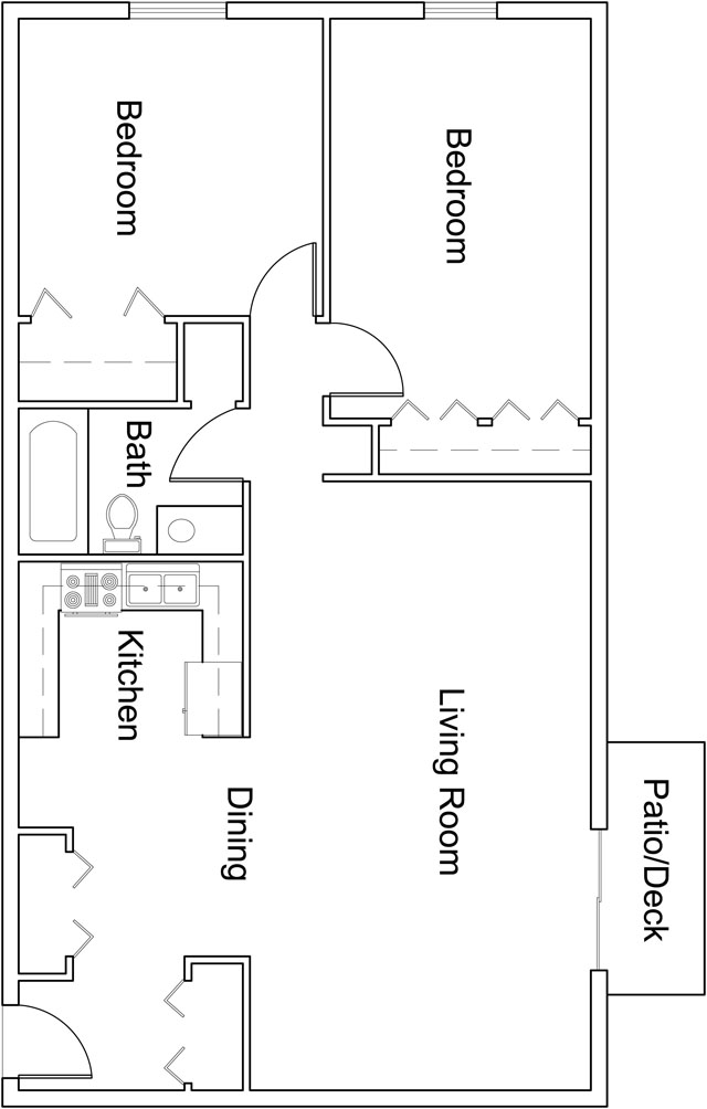 Apartment Model: 2 bedroom$9952 Bedroom, 1 Bath, 925-975 sq ftAvailable Now![]()