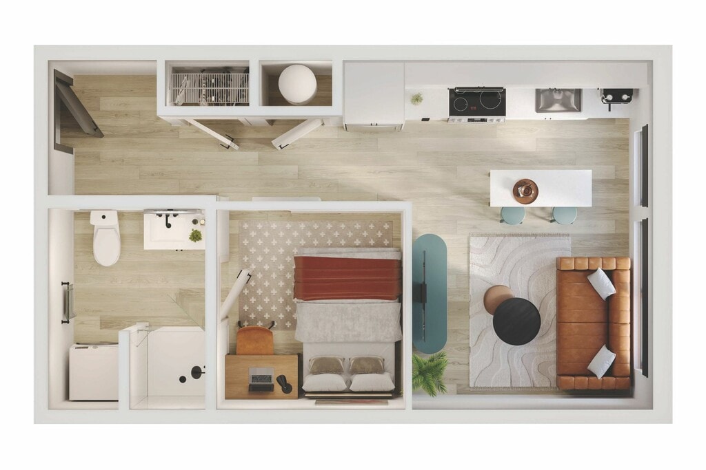 S - 01 - Floorplan 1 Apartment Unit: StandardApartment Model: S - 01Studio, 1 Bath, 420 sq ftAvailable August 18, 2026S - 02