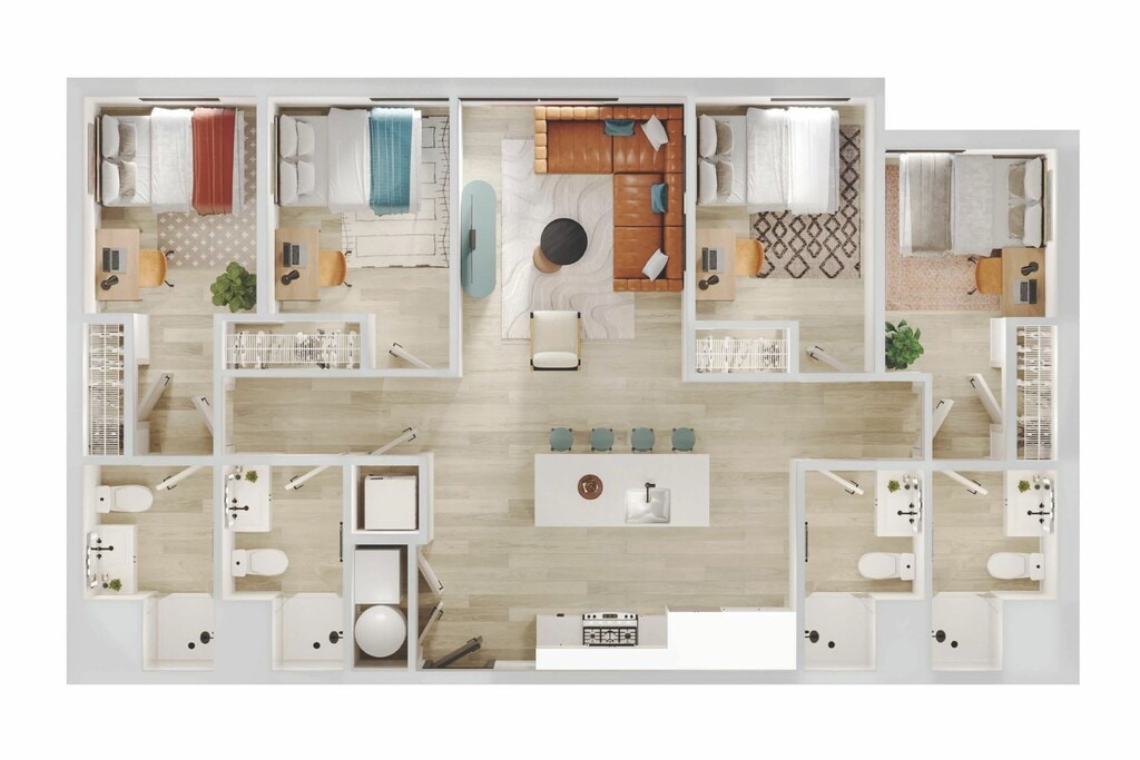 4BR - 03 - Floorplan 1 Apartment Unit: Skyline Attached BathroomApartment Model: 4BR - 034 Bedroom, 4 Bath, 1234 sq ftAvailable NowApartment Unit: VIP Attached BathroomApartment Model: 4BR - 034 Bedroom, 4 Bath, 1234 sq ftAvailable NowApartment Unit: Skyline Attached BathroomApartment Model: 4BR - 034 Bedroom, 4 Bath, 1234 sq ftAvailable Now4BR - 05
