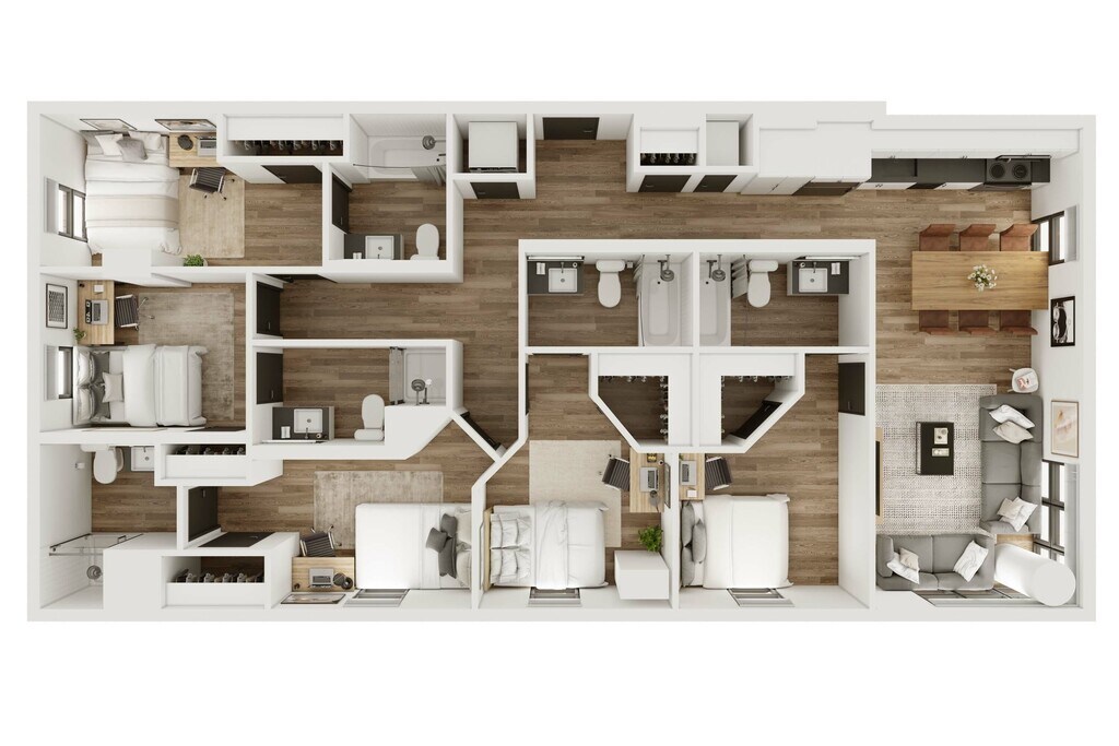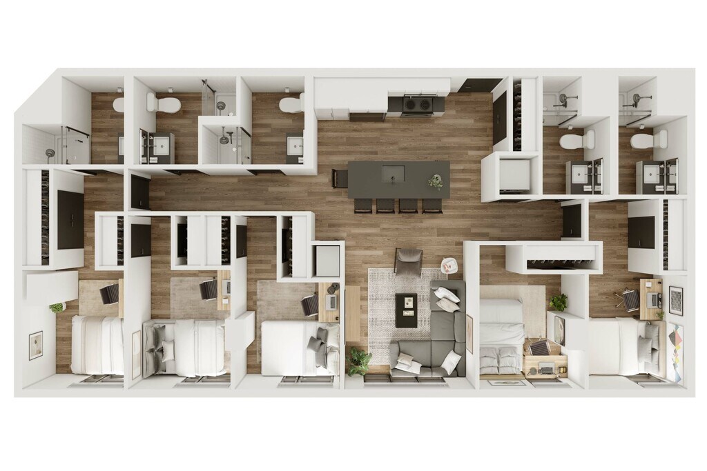 Apartment Model: 5BR/5BA - E15 Bedroom, 5 Bath, 1502 sq ftUnavailable![]()