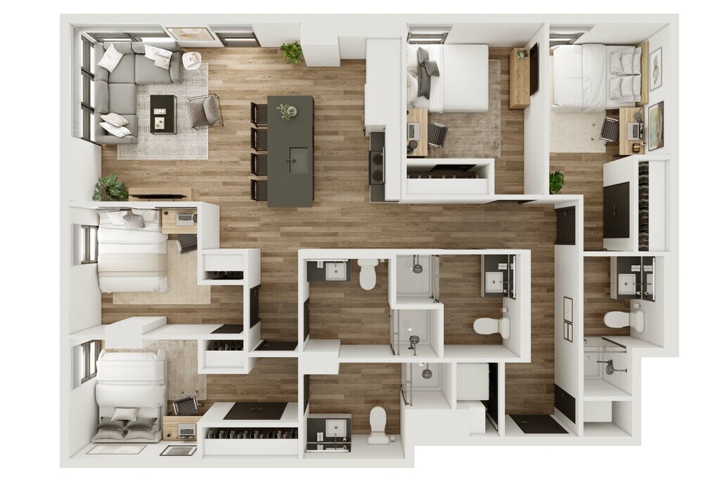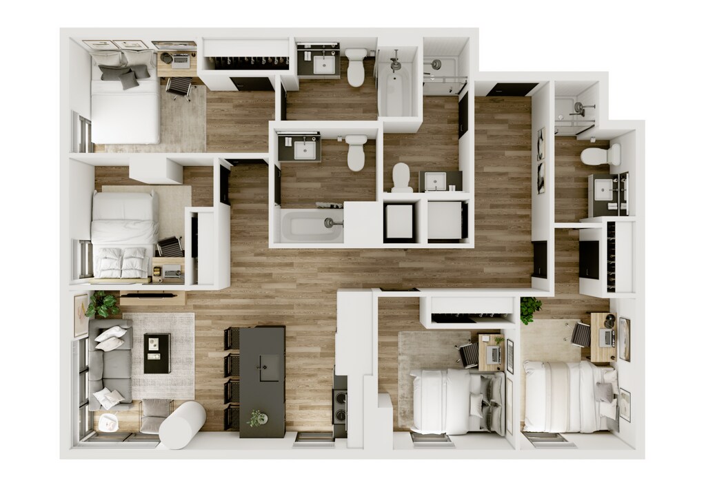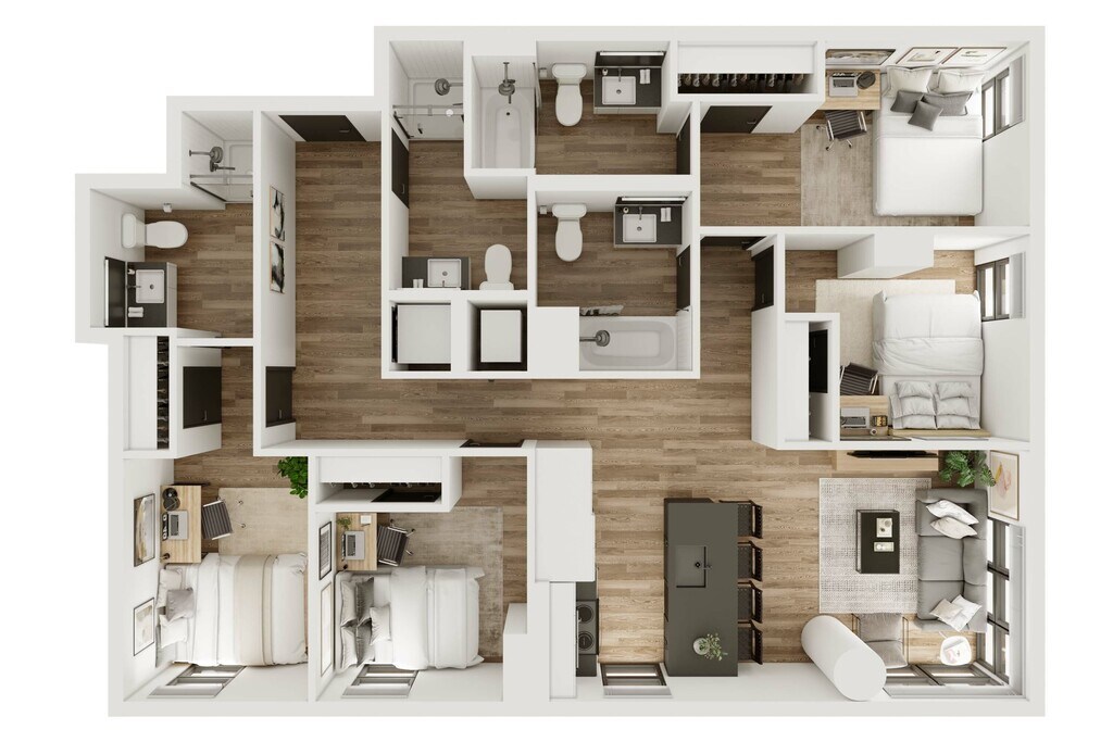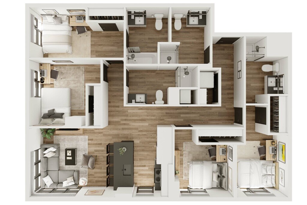 Apartment Model: 4BR/4BA - D4.14 Bedroom, 4 Bath, 1196 sq ftUnavailable![]()