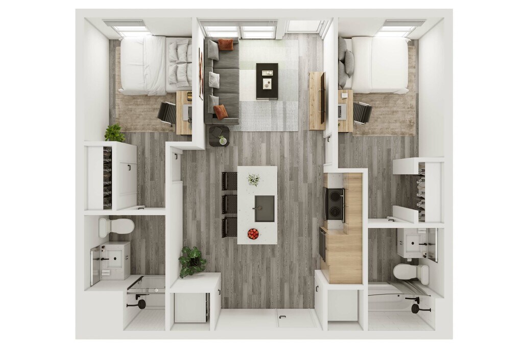 2 Beds, 2 Baths, 747 sq ftAvailable NowModel Gallery