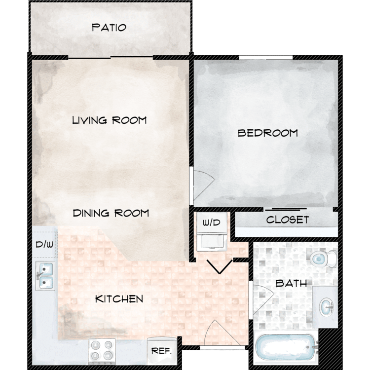 1 Bed, 1 Bath, 545-546 sq ftAvailable NowModel Gallery