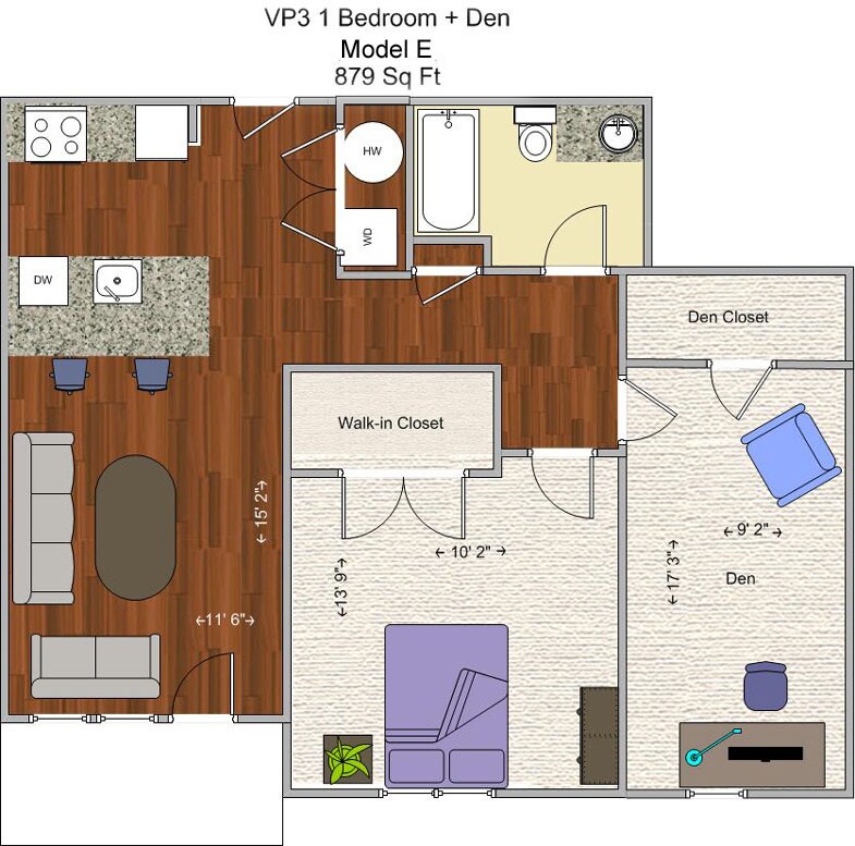 Apartment Model: 1 Bedroom Plus Den - Model E$1,9401 Bedroom, 1 Bath, 879 sq ftAvailable![]()