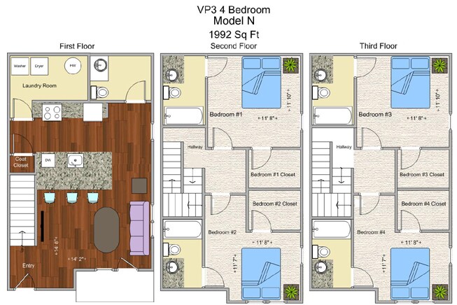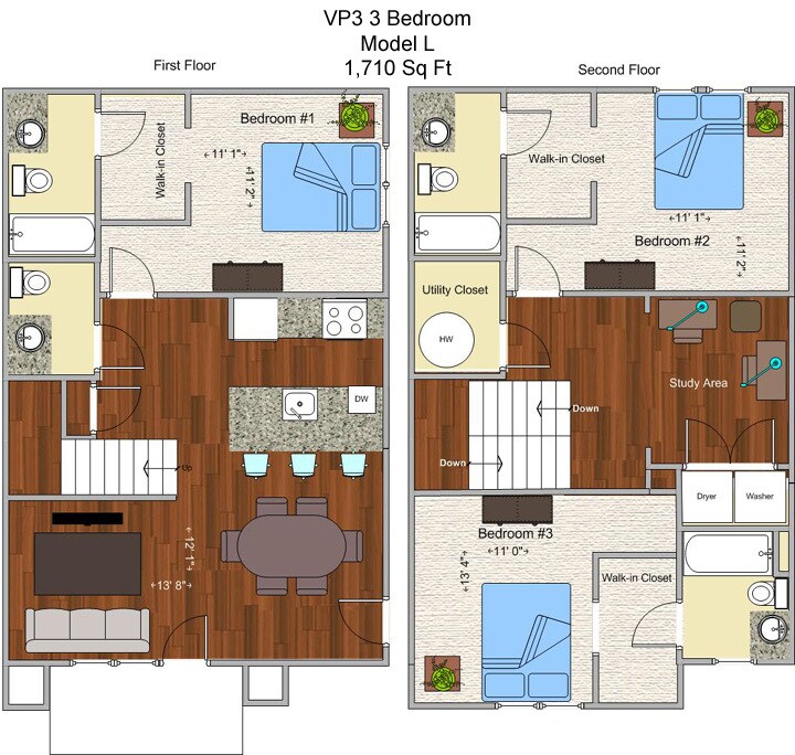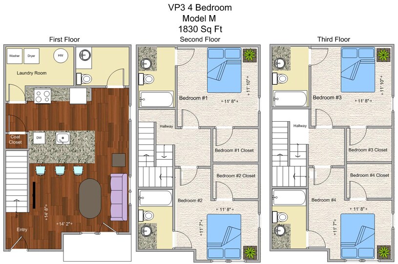 1 Bedroom to 4 Bedroom Apartments at VP3 currently range from $1,530 to $3,999