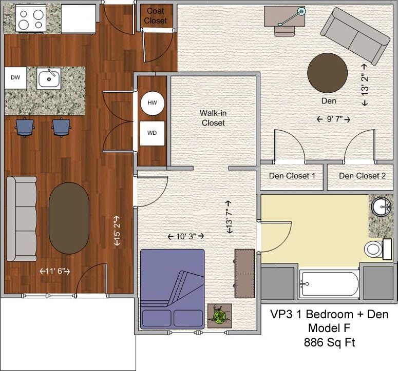 1 Bedroom - Model B - Floorplan 1 1 Bedroom Plus Den - Model C
